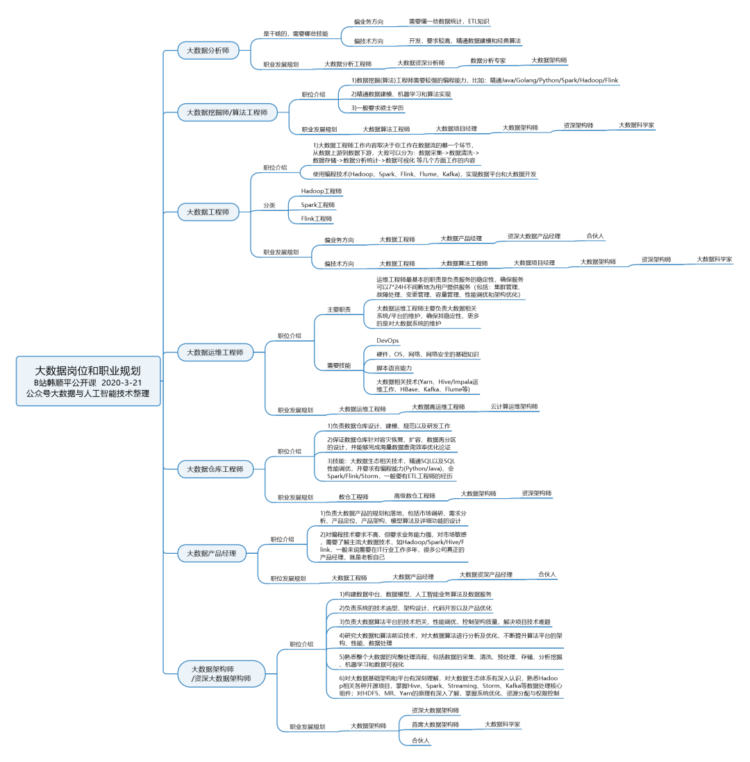 韩顺平老师是根据市场上学生的反馈做的这个导图,算法工程师这跟我想的不太一样。大数据为人工智能提供数据,在数据上游,人工智能应用数据,在数据下游。而且boss上招的算法工程师一般叫机器学习算法工程师,我以前的经验是这个第二大类岗位脱离大数据行业的,这个暂时无法下定言,有待我继续学习了解市场。