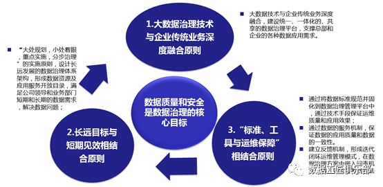 2.“三个相结合原则”:①大数据治理技术与企业传统业务深度融合相结合原则;②长远目标与短期实效相结合原则;③“标准、工具”与“运维保障”相结合原则。