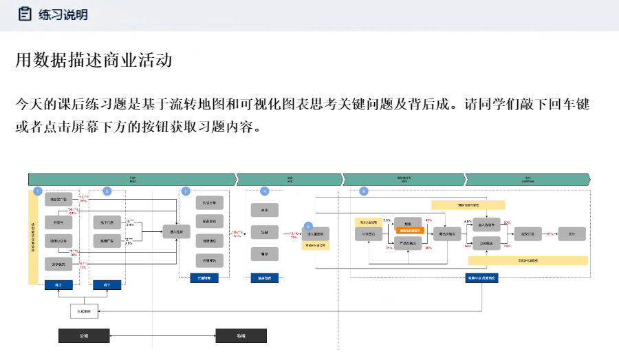 数据分析全流程:业务分析→数据可视化→数据洞察→决策分析→用数据讲故事。