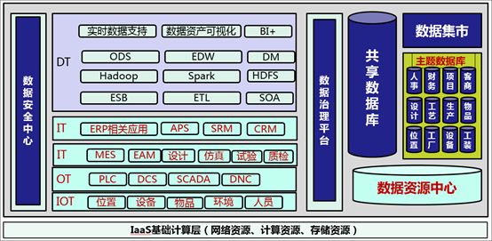 工业企业数据源头分为:IT层面(经营管理层面和生产层面)、OT层面、物连网(IOT)层面。
