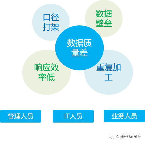 在没有数据指标体系之前,往往由业务人员作为指标的提出方和使用方,同时成为指标的管理方。但由于业务不同条线之间的不互通和对指标管理缺乏整体概念,往往导致以下各类问题层出不穷。