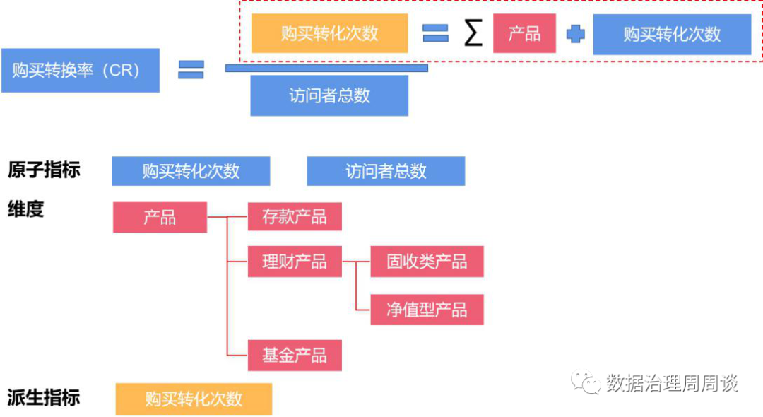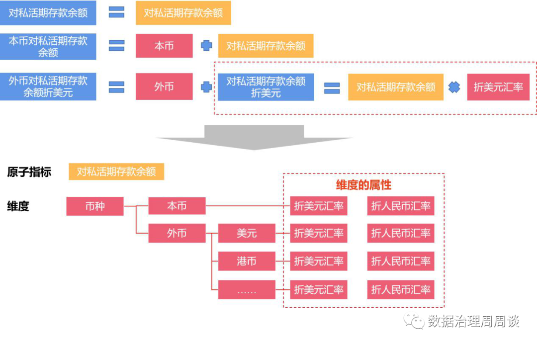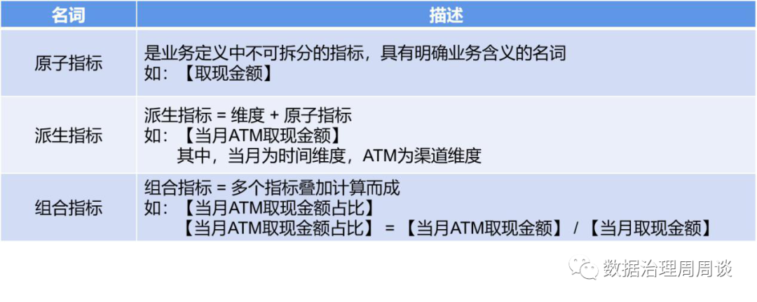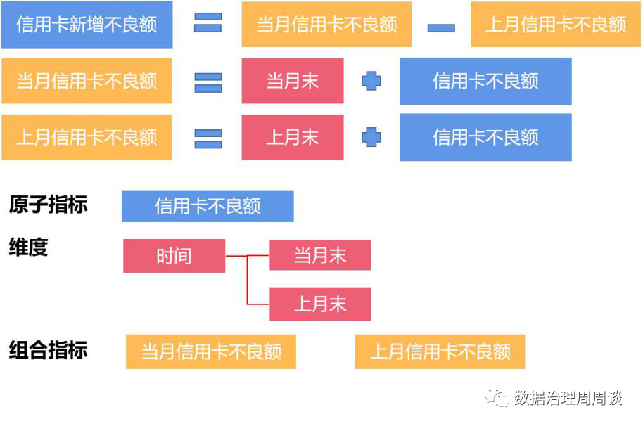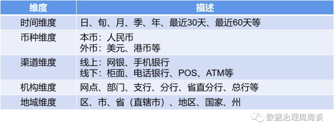 指标是衡量目标总体特征的统计数值,一般由指标名称和指标数值两部分组成。指标名称及其含义体现了指标在质的规定性和量的规定性两个方面的特点;指标数值反映了指标在具体时间、地域、条件下的数量表现。根据指标计算逻辑,可以将指标分为原子指标、派生指标、组合指标三种类型。维度是人们观察事物的角度,可以反映业务的一类属性,这类属性构成一个维度。一般常用的维度包括时间维度、渠道维度、地域维度等。当原子指标加上维度后,便可以形成派生指标,相当于某一维度上限定了一个值,则形成原有数据的一个切片,如果对多个维度进行限定,每个维度限定为一组取值范围,则是原有数据的一个切块。