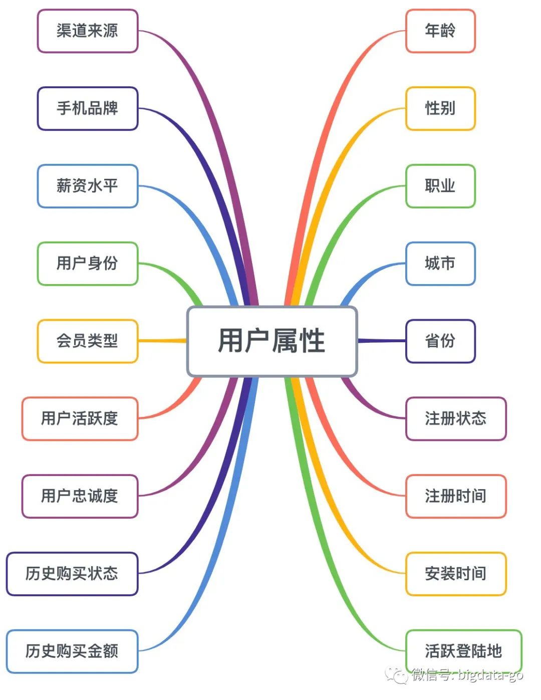 这五大维度数据标签不再一一列举,仅举例用户属性标签如下: