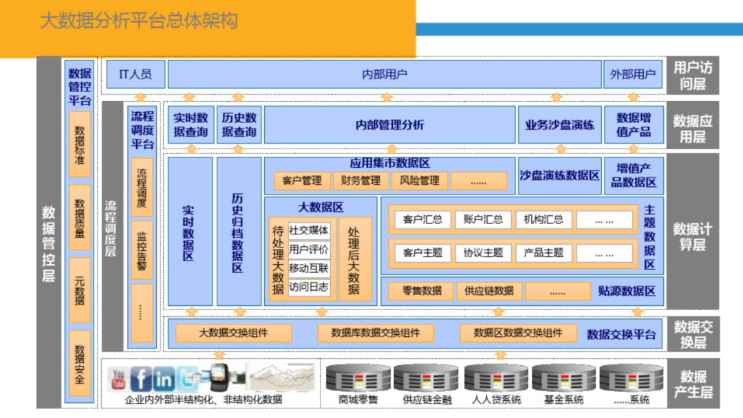 今天给大家分享一下智慧金融行业的大数据平台总体架构是如何设计的,包括: