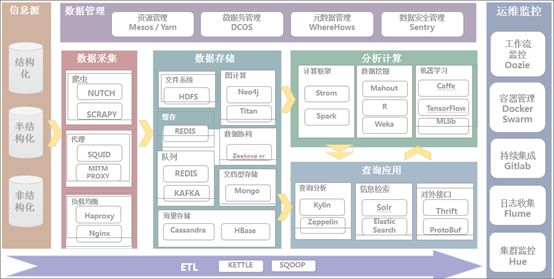 主要包含:语言工具类、数据采集工具、ETL工具、数据存储工具、分析计算、查询应用及运维监控工具等。以下对各工具作为简要的说明。