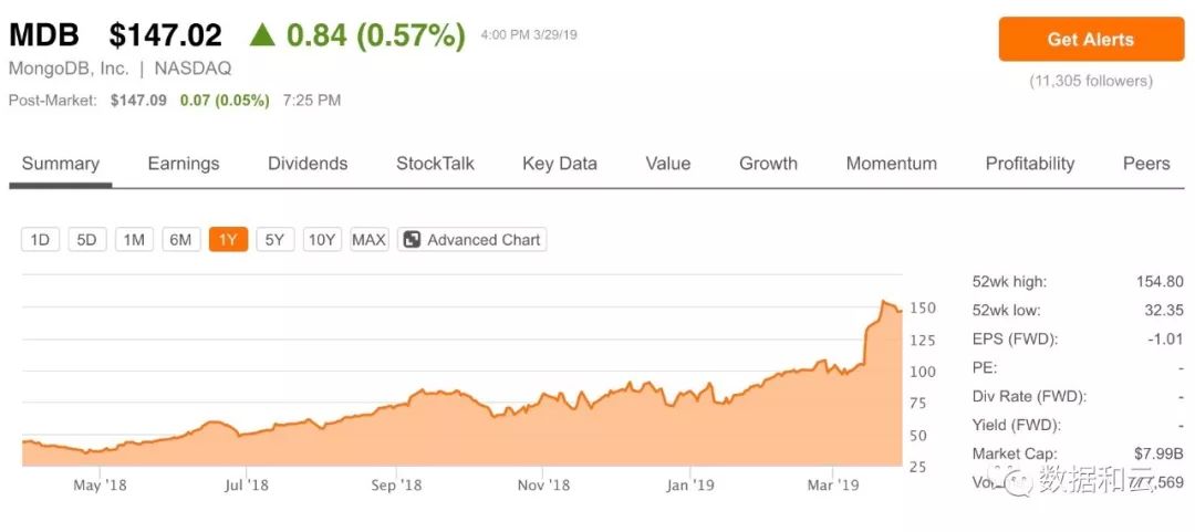 这些数据库产品正在通过云的方式进入到万千的新兴企业和应用,而市场也满怀期待的给予新兴的数据库产品超高的市场期待,MongoDB最近的市值已经攀升到80亿美元。