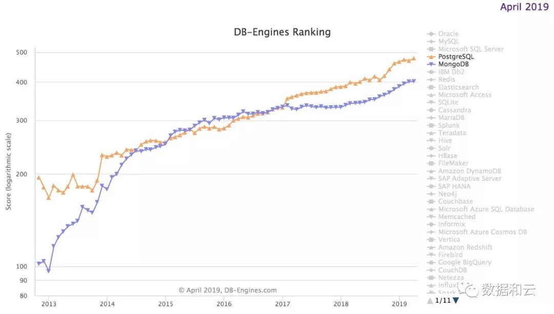 2019年的第一个季度已经过去,DB-Engines的四月数据库流行度排行榜已经发布。