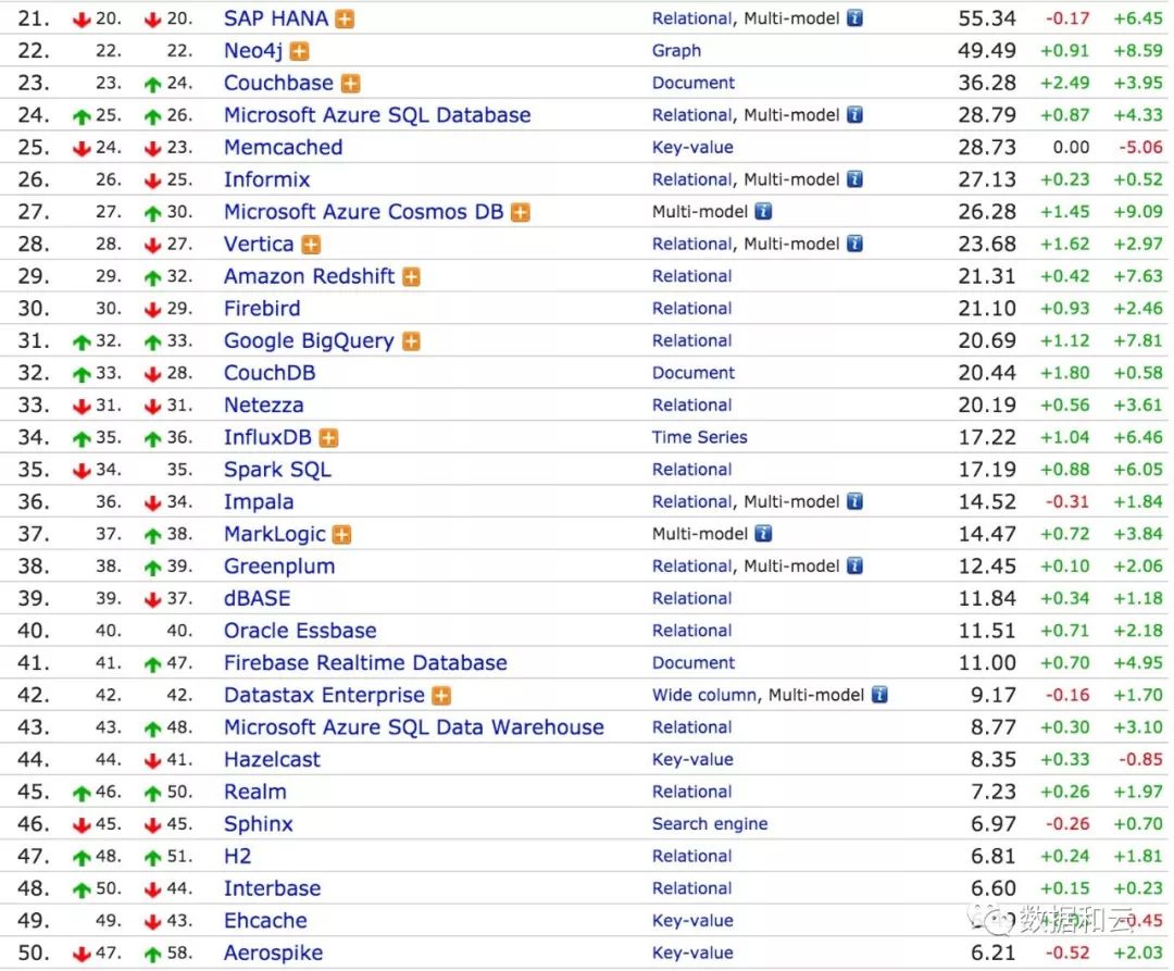 最后收录20 - 50名的数据库产品供读者朋友参考: