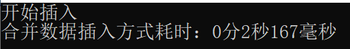 //开始时间var startTime = DateTime.Now;using (var conn = new MySqlConnection(connsql)){conn.Open();//插入10万数据var sql = new StringBuilder();for (var i = 0; i < 100000; i++){if (i % 1000 == 0){sql.Append("insert into trade(id,trade_no) values");}//拼接sql.AppendFormat("('{0}','{1}'),", Guid.NewGuid().ToString(), "trade_" + (i + 1));//一次性插入1000条if (i % 1000 == 999){var sqlComm = new MySqlCommand();sqlComm.Connection = conn;sqlComm.CommandText = sql.ToString().TrimEnd(',');sqlComm.ExecuteNonQuery();sqlComm.Dispose();sql.Clear();}}conn.Close();}//完成时间var endTime = DateTime.Now;//耗时var spanTime = endTime - startTime;Console.WriteLine("合并数据插入方式耗时:" + spanTime.Minutes + "分" + spanTime.Seconds + "秒" + spanTime.Milliseconds + "毫秒");