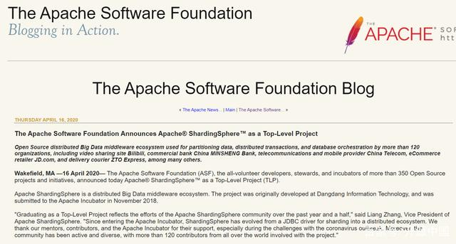 4 月 16 日,被 Apache 软件基金会宣布毕业并成为 Apache 顶级项目,
