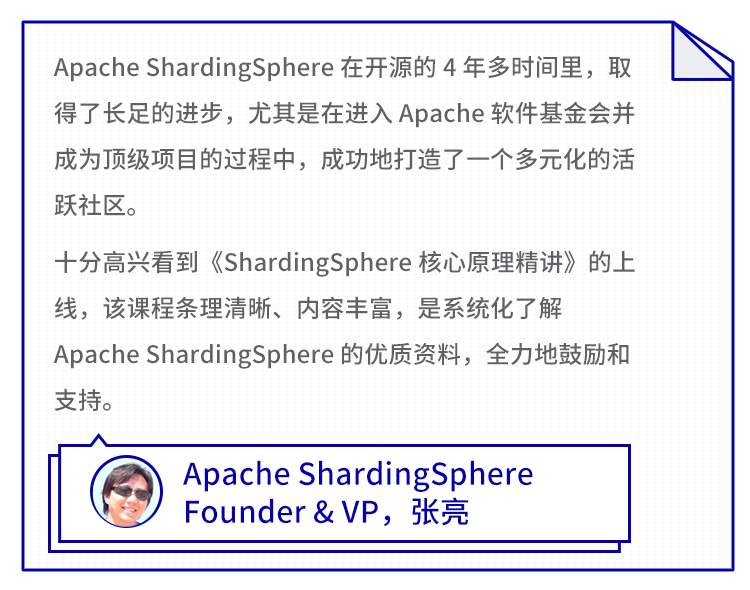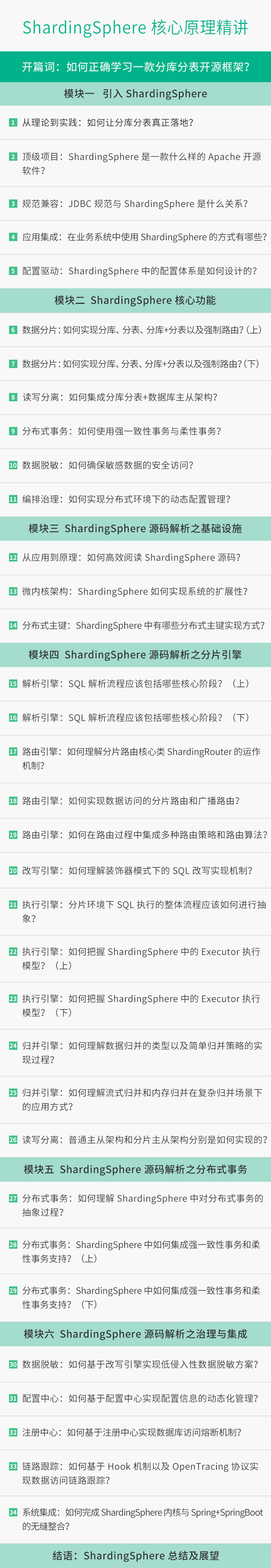 专栏由拉勾教育推出的「 ShardingSphere 核心原理精讲」,课程目的很简单,就是带你