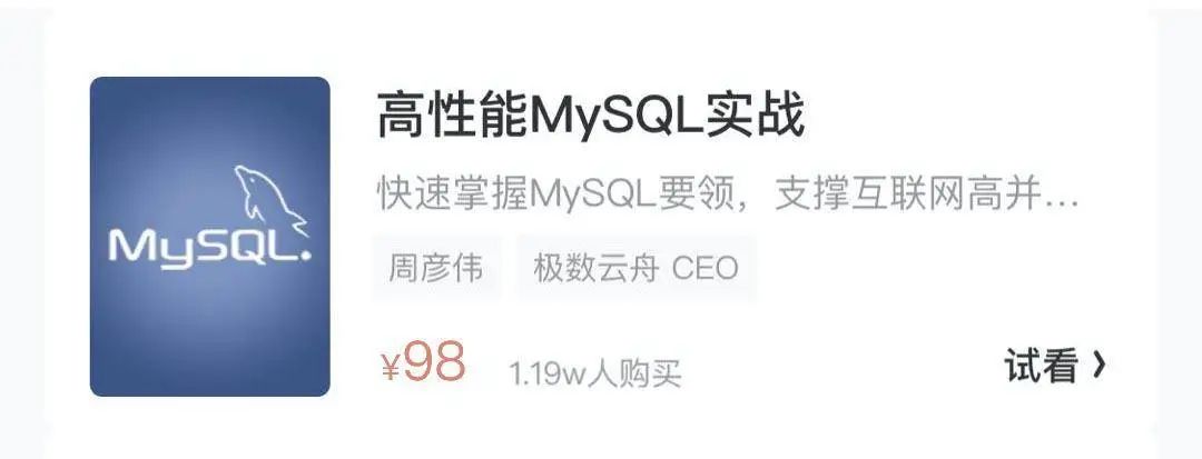 点击「阅读原文」,我自掏腰包请大家学习一门价值 ¥98 的课程「高性能 MySQL 实战」,仅限 50 人。