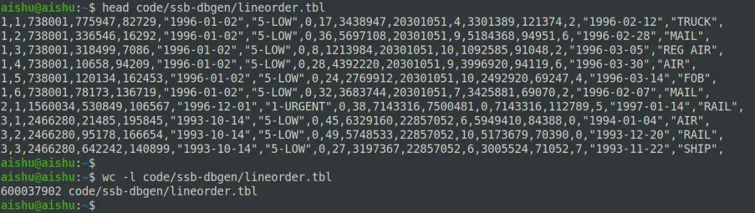使用ClickHouse官方提供的测试数据集,共67G,约6亿行。