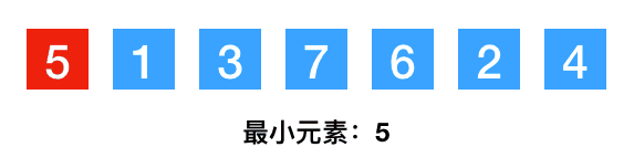 然后我们再通过我制作的gif,配上数据再了解一下过程。假设我们的待排序数组还是[5, 1, 3, 7, 6, 2, 4]。