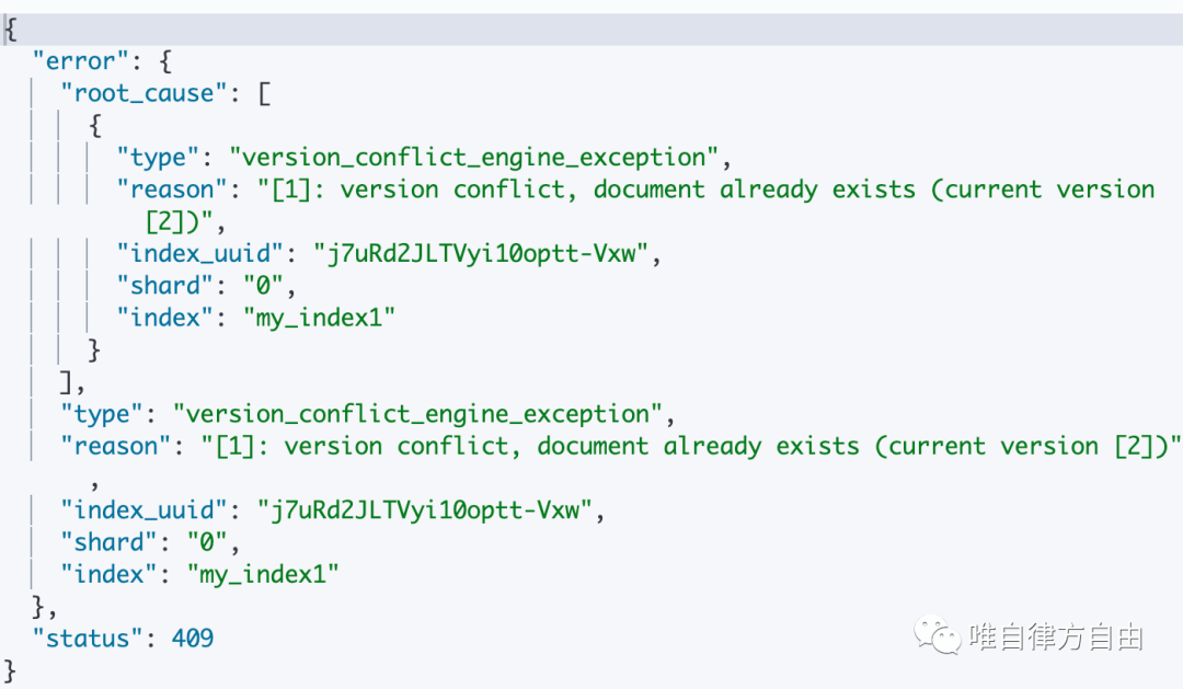 Index 操作表示:如果文档的 ID 不存在,则创建新的文档,若文档的 ID 存在,则先删除现有文档,然后再创建新的文档,同时文档版本 +1。
