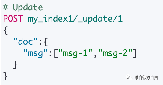 POST <_index>/_update/<_id>{"doc":{"msg":["msg-1","msg-2"]}}