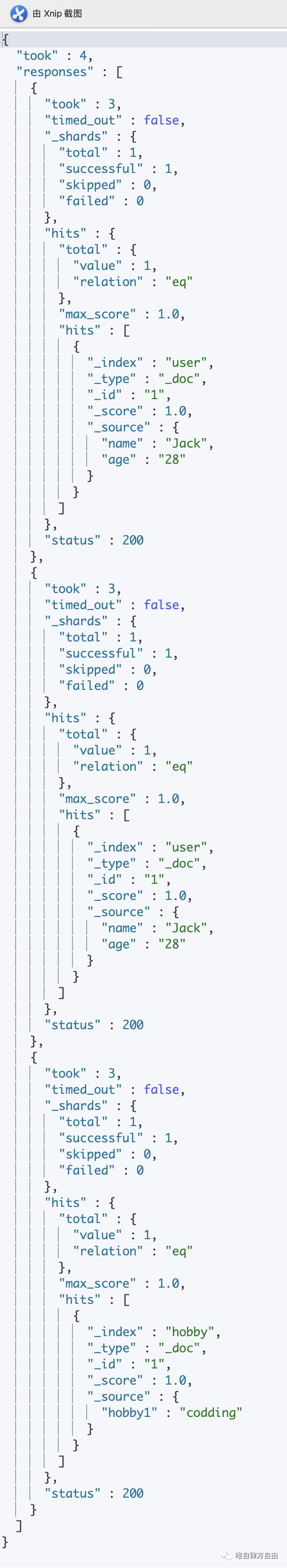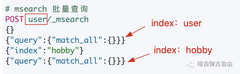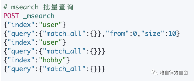 msearch(批量查询)通过一次 Rest 访问,对不同索引进行不同查询。