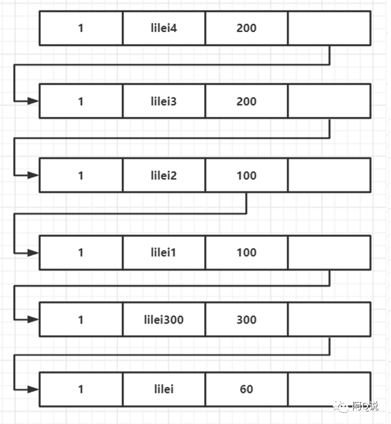 ,版本链还和之前一样,此时我们查询到的数据为lilei2