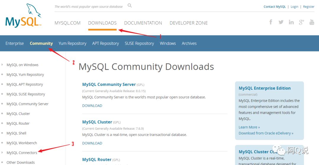 (1)首先我们要下载mysql数据库的驱动jar包,打开https://dev.mysql.com/downloads/ 页面,