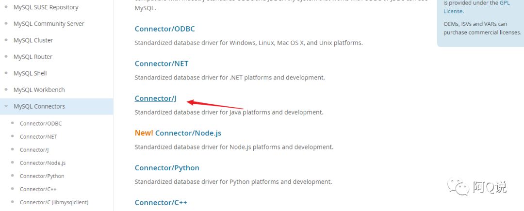 选择MySQL Connectors进入下一页