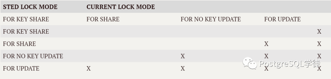 在PostgreSQL中,表级锁分为8种,如下:
