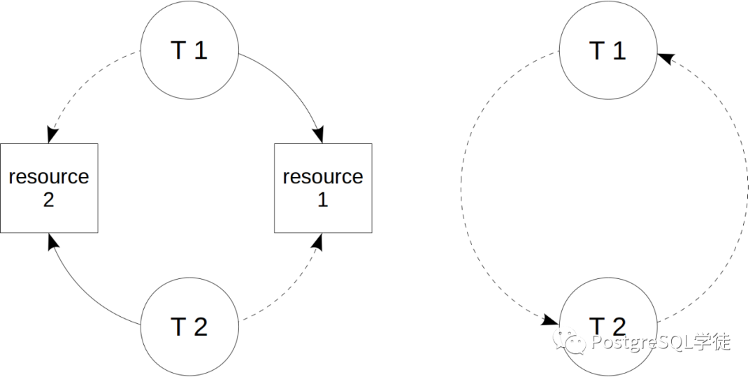 死锁在各大主流数据库中都有,当一个事务试图获取另一个事务已在使用的资源,而第二个事务又试图获取第一个事务在使用的资源时,就会发生死锁,在PostgreSQL中,有lock_timeout、deadlock_timeout、log_lock_waits(日志记录)等参数控制。死锁检测是一件十分耗费资源的事情,大多数时候,一旦检测到死锁,则其中一个事务(大多数情况下是发起检查的事务)将被迫中止。