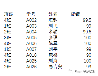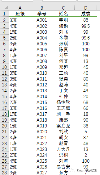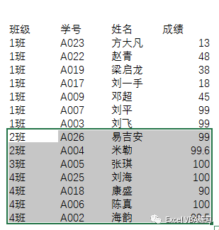 如下图所示,这里是一份某学校二年级学生的成绩表