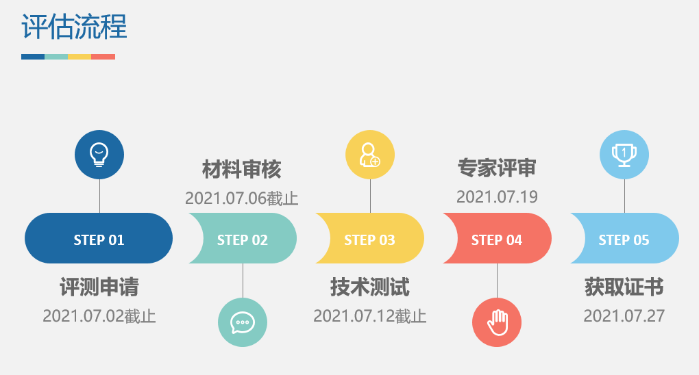 答辩材料包括:材料审核阶段的材料、技术测试报告、答辩PPT(提供PPT模板),专家评审定级,通过后可获得相应级别的证书;