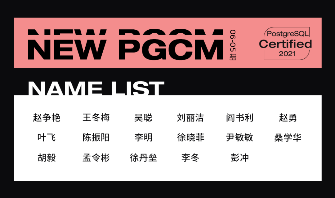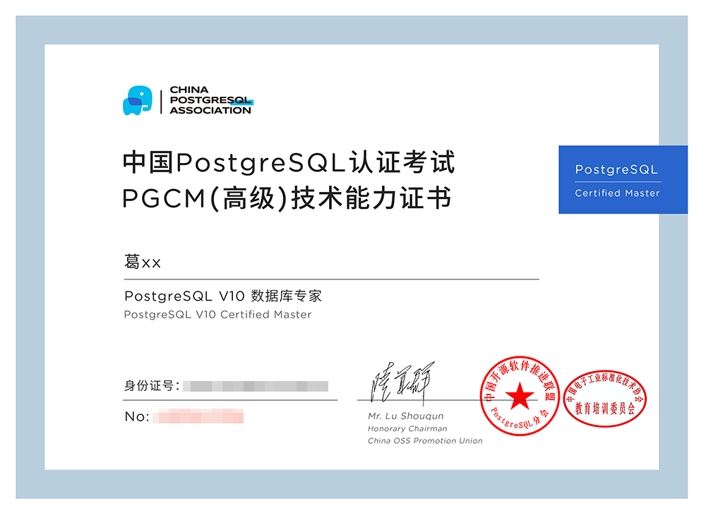 PGCM(PostgreSQL Certified Master),是中国PostgreSQL技术能力认证体系的最高级别。PGCM认证培训致力于为中国PostgreSQL行业培养出最高级别的专业型、实用型、国际化的高端技术人才,并帮助从业人员快速完成职业和专业能力塑造,迅速提高岗位技能和职业水平,提高个人的市场竞争力,高质、高效地从事工作。