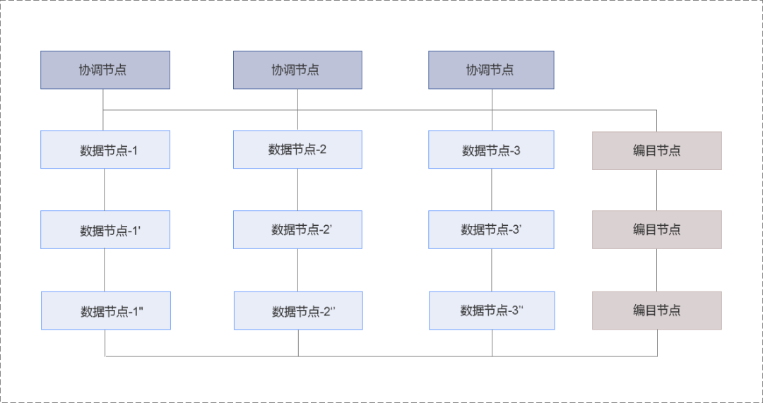 TDSQL 的节点都是用的 MySQL。它是采用分布式集群架构(如下图),这种集群架构具有较高的灵活性,简化了各个 节点之间的通信机制,也简化了对于硬件的需求。这不仅意味着 TDSQL 的关系型实例、分 布式实例、分析性实例可以混合部署在同一集群中,也意味着即使是简单的 x86 服务器,也 可以搭建出类似于小型机、共享存储等一样稳定可靠的数据库。