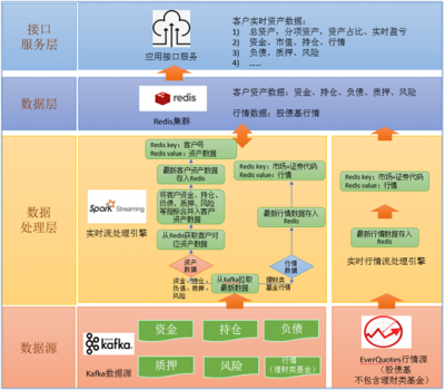 实时计算系统把客户在集中交易、两融、OTC、期权、黄金五大系统(以下简称“五大系统”)内的数据资产汇总到一起,并与五大系统的数据同步变化。