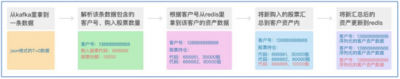 图2中的数据处理层Spark Streaming与上下游工具配合,承担了实时流处理的工作。以客户开市期间的一笔股票交易为例,Spark Streaming处理该客户的资产过程简化后如图3: