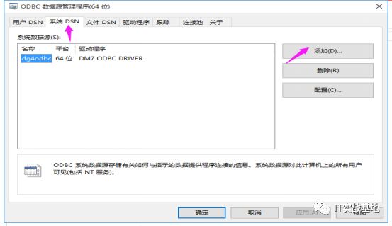 选择系统DSN创建ODBC数据源,单击添加按钮,进入配置页面: