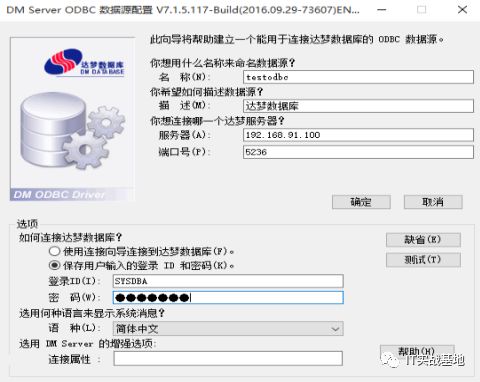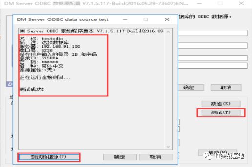 2、ODBC配置后,应进行有效性测试,测试能否正常访问到达梦数据库。