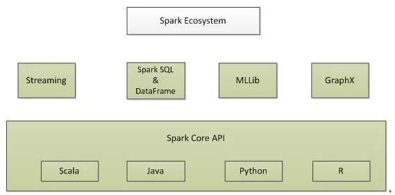 Streaming具备实时流数据的处理能力,Spark SQL语言查询结构化数据,DataFrame将数据保存为行的集合,可快速查询、绘制和过滤数据,MLib是Spark的机器学习框架,GraphX是图计算框架,提供结构化数据的图计算能力。Spark支持Scala、Java、Python和R等四种语言的API编程。