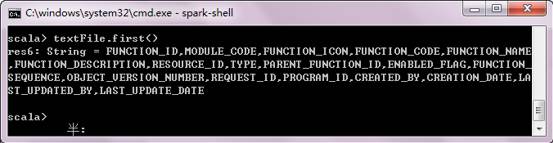 scala> textFile.first()//first读取文件的第一个Item,对于文本文件就是第一行内容