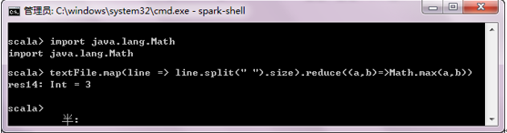 textFile.map(line=> line.split(" ").size).reduce((a, b) => if (a > b) a elseb)//返回包含单词最多的行