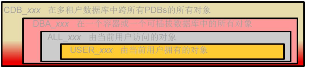 12c中提供了新的CDB级别的数据字典视图,其与原先的数据字典视图关系如下: