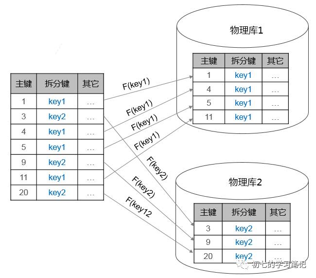 垂直切分(通常称为"分库"),是指按功能切分数据库,表和表之间的功能关联紧密的存放于一个数据库。比如一些电商平台,原先一个数据库实例,按功能切分为会员数据库、商品数据库、交易数据库、物流数据库等多个数据库实例,共同承担业务压力