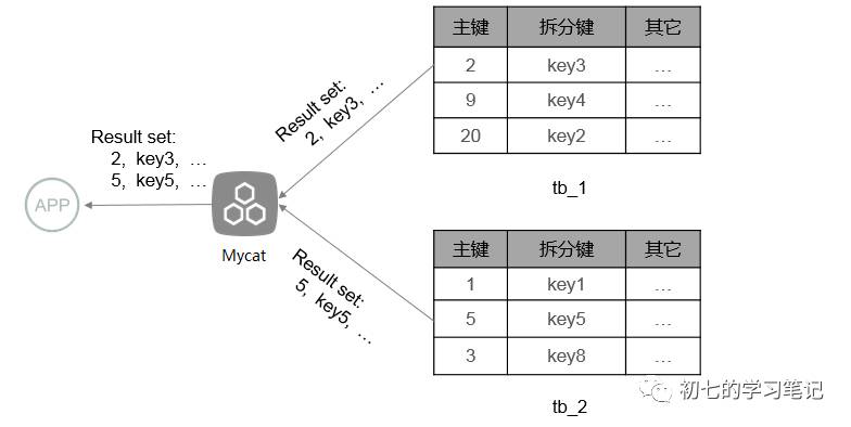 如果一个SQL语句被路由到多个分表执行,mycat中间件会将各个分表返回的数据按照原始SQL语义进行合并,并将最终结果返回给用户