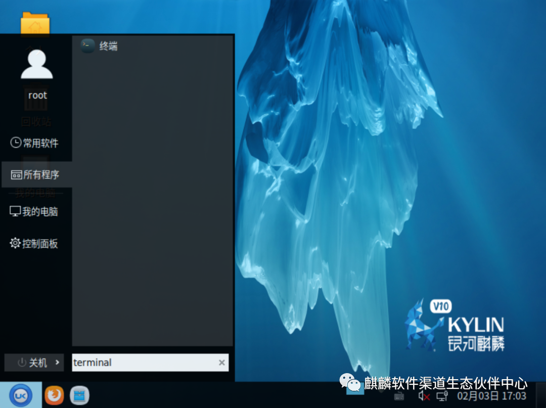 方法三:鼠标单击【开始】-在搜索框中输入terminal-点击【终端】