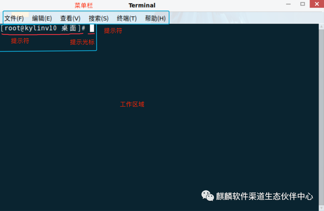提示符: 命令界面提示符默认包含以下信息 [当前用户名称@主机名称 当前目录] 其中符号'#'代表管理员权限 '$'代表普通用户权限。