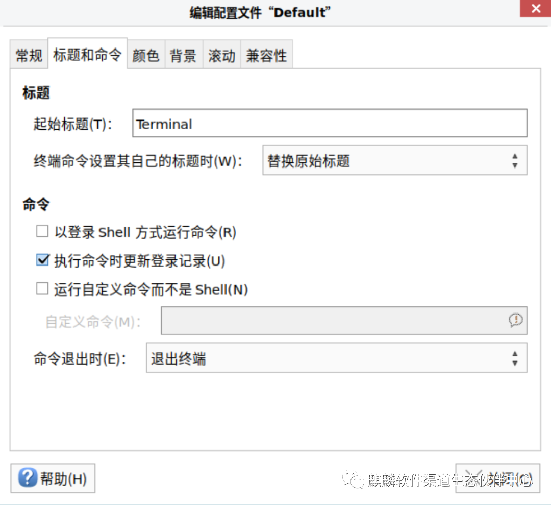 选择这项以在终端中运行指定命令而不是通常的 shell。在自定义命令文本框中指定自定义命令。
