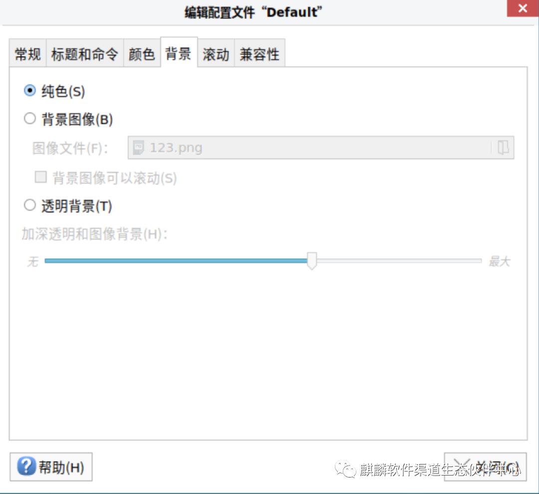背景图像可以滚动(S): 使用终端右侧的滚动条上下滚动终端中的输出时,是否背景也随之滚动。