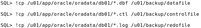 Step3:关闭数据库并复制数据文件、控制文件和重做日志文件。
