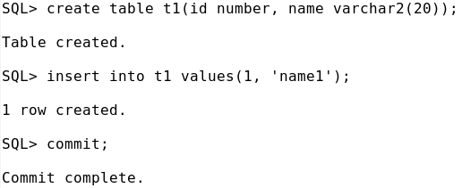 为了演示恢复,首先模拟故障,首先创建表、插入数据,最后删除数据,模拟用户的错误操作,然后用冷备份实现误操作的恢复。