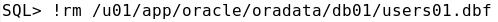 Step2:模拟数据损坏故障。删除数据文件users01.dbf文件。