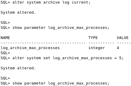 默认情况,该参数的值是2,由于参数log_archive_max_process是动态参数文件,我们可以直接修改。