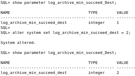 Step4:设置最小的成功归档地址数量并查看(只要达到满足的条件当前日志组才能切换)