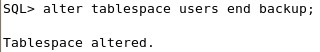 · 结束备份模式,使用alter tablespace users and backup指令。